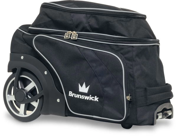 The Brunswick Charger Double Roller introduces an all new innovative padded base design. The Charger Double Roller features a unique sleek handle system, extra-large wheels for stability and dual side pockets to carry all of your accessories. The top pocket holds up to size 12 men’s bowling shoes plus side accessory pockets on both sides for additional storage.