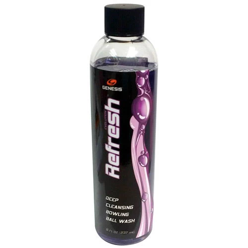 Over the years there have been many attempts and gimmicks to try and “rejuvenate” your ball. From the ill-advised baking method, to kitty litter, to using common dish soap in a bath. The problem with these methods is that while they may be successful at extracting some of the bad stuff, they also extract and remove the “good oils” in your ball – mainly the plasticizers… To remedy this, Genesis has developed this Evolution RefreshTMball wash concentrate. Their approach was to use many of the same ingredients used in today’s lane cleaners. Products that are specifically designed to clean and emulsify dirt and lane oils!The result is a safe, new way to extract and wash away all the deep down dirt and oil, while not harming your ball’s coverstock material. If your ball has experienced a loss in performance over time, then maybe it’s time to RefreshTM!