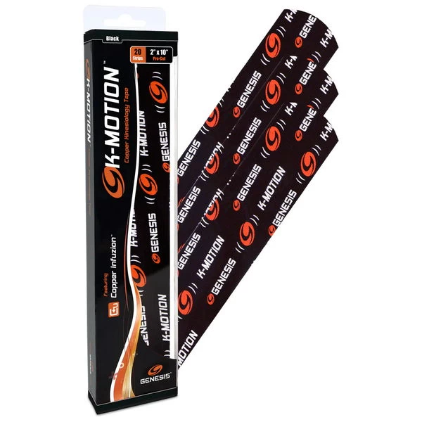 Introducing Genesis K-Motion Pre-Cut Strips: Elevate Your Taping Experience! Are you tired of fumbling with scissors when you need a precise tape length? Say goodbye to the hassle of cutting tape by hand with our innovative Genesis K-Motion Pre-Cut Strips. Designed for standard length applications, these pre-cut strips are engineered to make taping faster and more convenient than ever before. Key features include fray-resistant design, same length as a standard 16.4′ roll, and Copper Infuzion! The low residue/maximum adhesive and extended wear provides up to 5 days of continuous support with little to no mess, while providing pain relief, increased support and added stability for injured or weakened muscles, delays fatigue and can ease joint soreness.