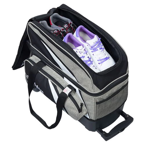 This KR bowling bag has room for two bowling balls as well as all your gear. It provides a separate shoe compartment that holds 2 pair of shoes and has Velcro retaining straps to ensure your bowling balls are secure! Grab your KR Cruiser Smooth Double Roller today!