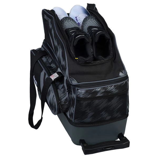 Designed and assembled in the USA, the KR Strikeforce Cruiser Scratch Double Roller bag is a great bag for couples. With room for two bowling balls, two pairs of shoes, and additional accessories in a large side pocket, you will have everything you need for your next bowling night! With new color-coordinated molded base and urethane wheels, you will sure to roll up to the bowling center in style!