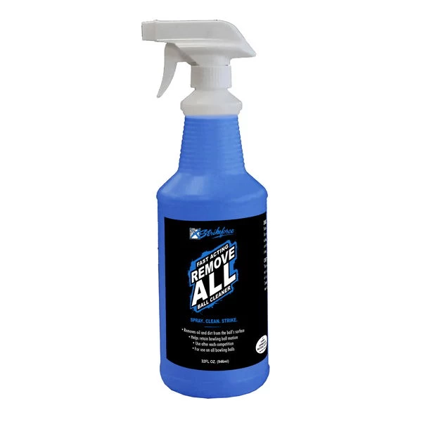 Strikeforce Remove All Bowling Ball Cleaner 32oz does a great job removing oil and dirt from the surface of the bowling ball.