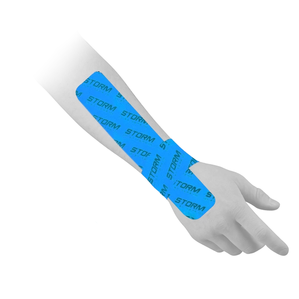 Storm is breaking through modern sports science with their innovative GT Tape. This unique tape provides stimulation to a variety of sensory nerves in the skin and surrounding tissues by amplifying touch sensitivity, increasing fine motor control, improving pain reduction, and heightening temperature and pressure sensitivity. This tape includes 2% germanium additive which oxygenates bloods resulting in increased recovery time by improving immune function. 2% tourmanium and 2% anion additives enhance blood circulation, cellular function, metabolism, and regeneration of tissues.
